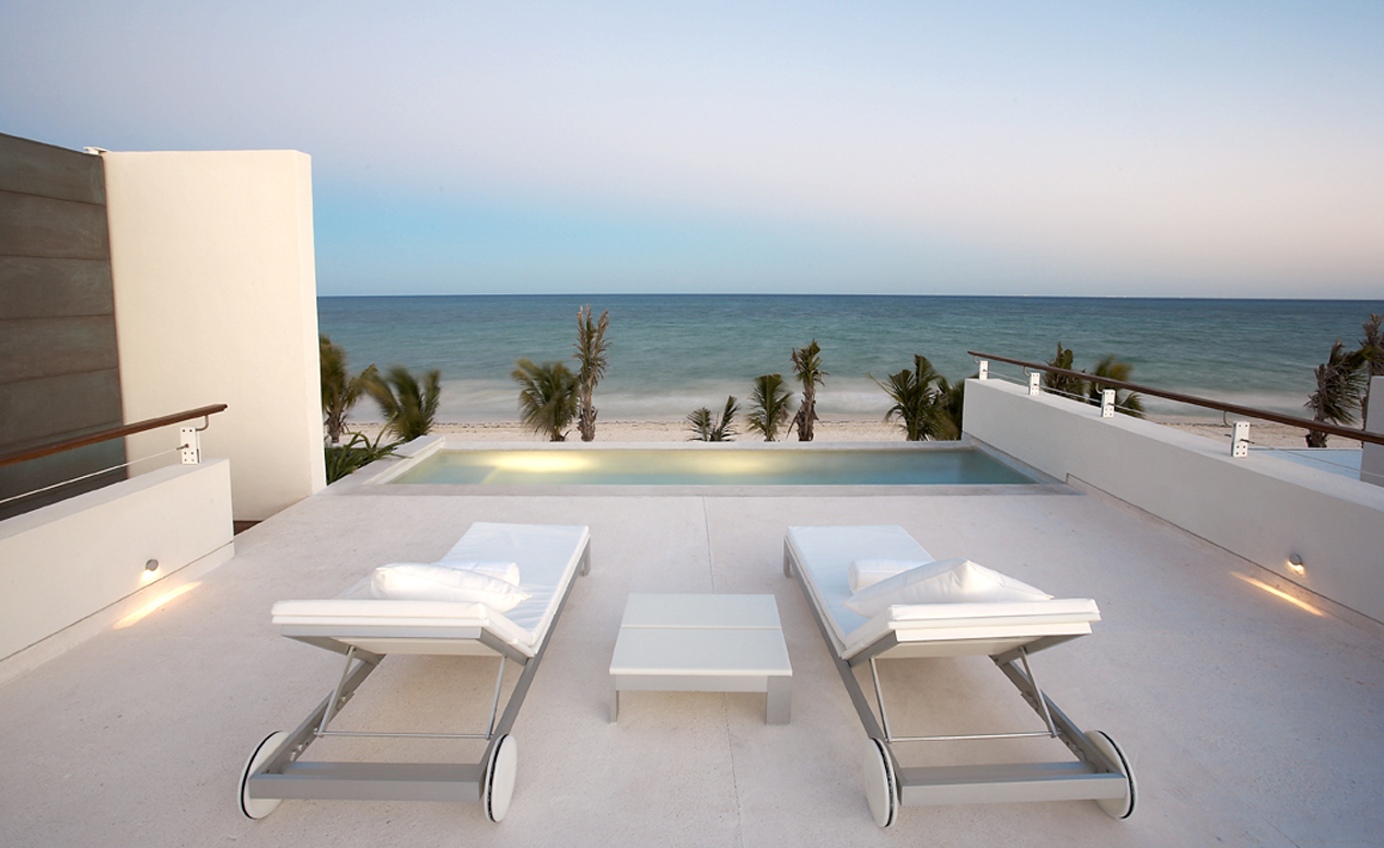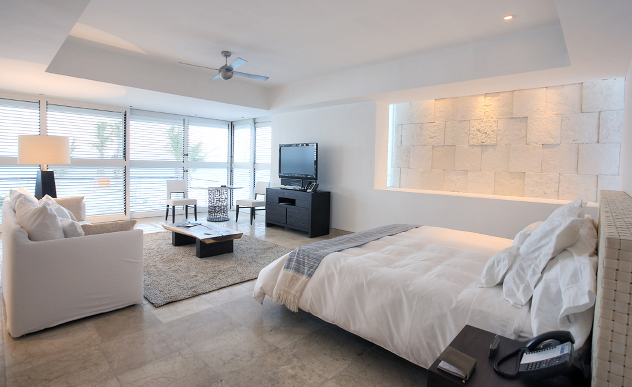 Step from the soft sands of the Mayan Coast into these stunning suites offering uninterrupted views of the Caribbean. Each features a spectacular beachfront location with private terraces, private beach access, luxurious bathrooms with two rain showerheads, indoor marble tubs, and oceanfront rooftop terraces with infinity pools. Additional comforts include 42” HD flatscreen TVs with home theater systems, Nespresso coffee machines, luxury leather headboards, dressers, walk-in closets, floor-to-ceiling windows, and 500-thread-count linen sheets. These rooms accommodate up to two guests.